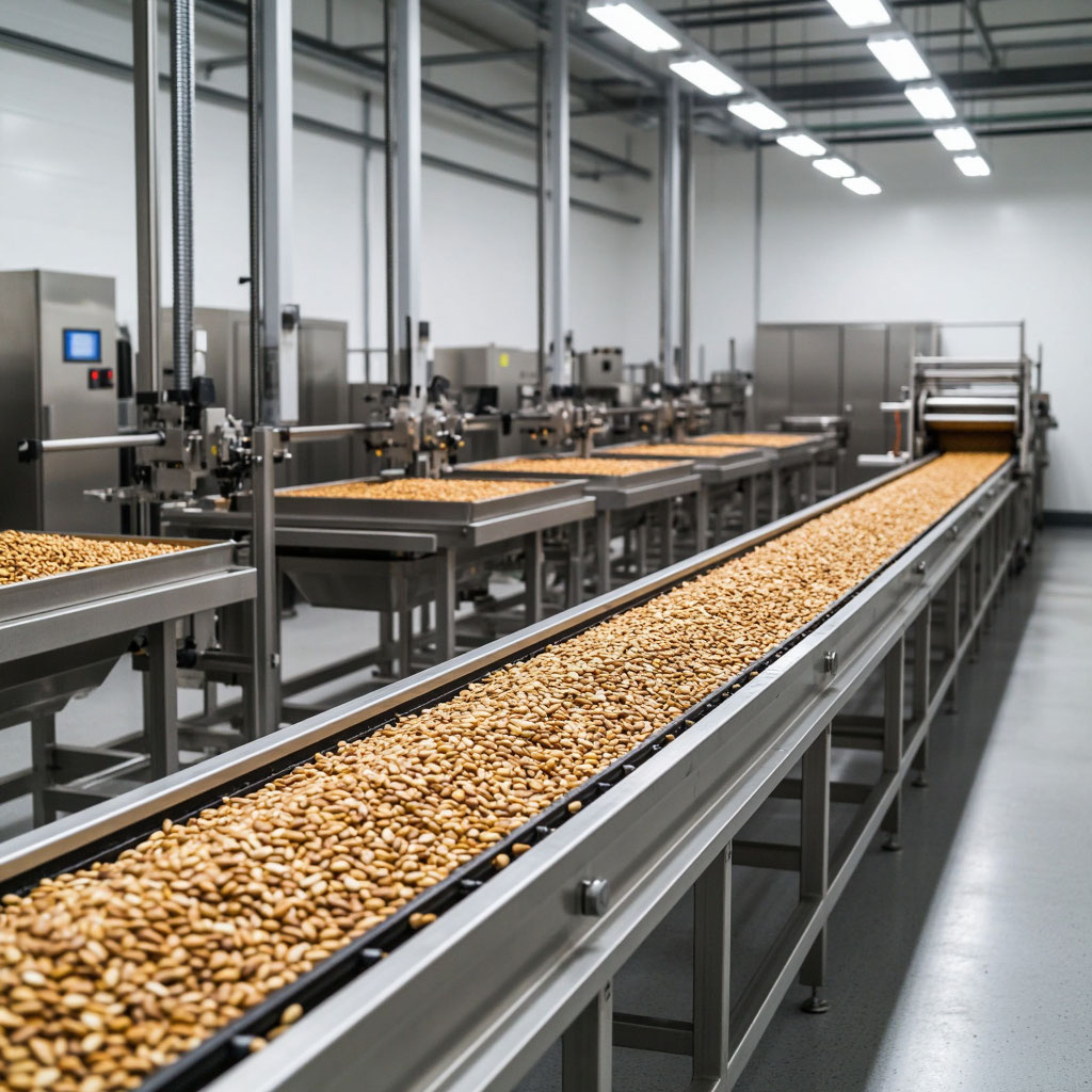 - Автоматическое оборудование для производства батончиков. В приемный бункер поступает еще не закристаллизованная смесь козинака и карамели (козиначное тесто). Козиначное тесто вытягивается валами и происходит формирование пласта. Далее пласт нарезается на заданные размеры.